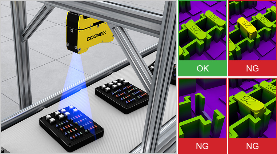 Através da utilização de uma imagem 3D e a tecnologia avançada AI, a In-Sight L38 permite detetar características subtis e com alguma variação, efetuar medições dentro de tolerâncias específicas. Com a utilização das ferramentas AI embebidas é possível aprender e adaptar variações, melhorando a capacidade de deteção de defeitos, mesmo em anomalias que não era possível detetar anteriormente.